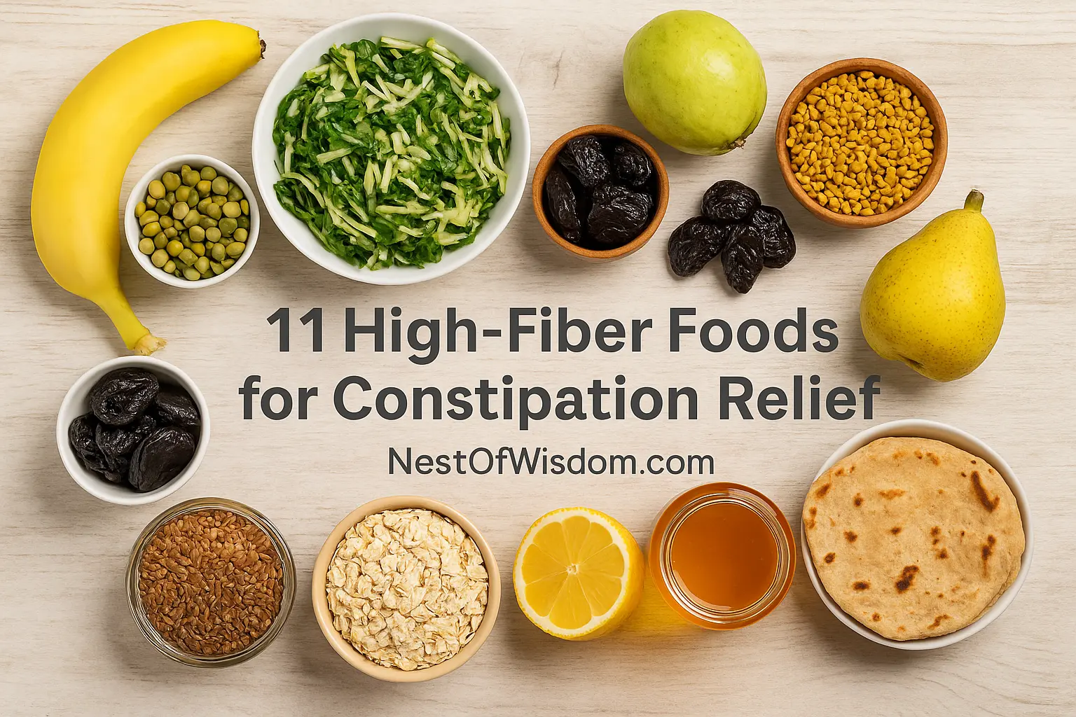 - Pear–Flax Oats Bowl: Cook oats; stir in 1 tbsp ground flax; top with pear + 1 tsp jaggery. Hydrate alongside to optimize high-fiber foods for constipation relief.