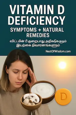 தமிழில்: எளிய உணவு மாற்றங்கள் + ஒழுங்கான வெயில் — Vitamin D Deficiency Symptoms குறைய உதவும்.